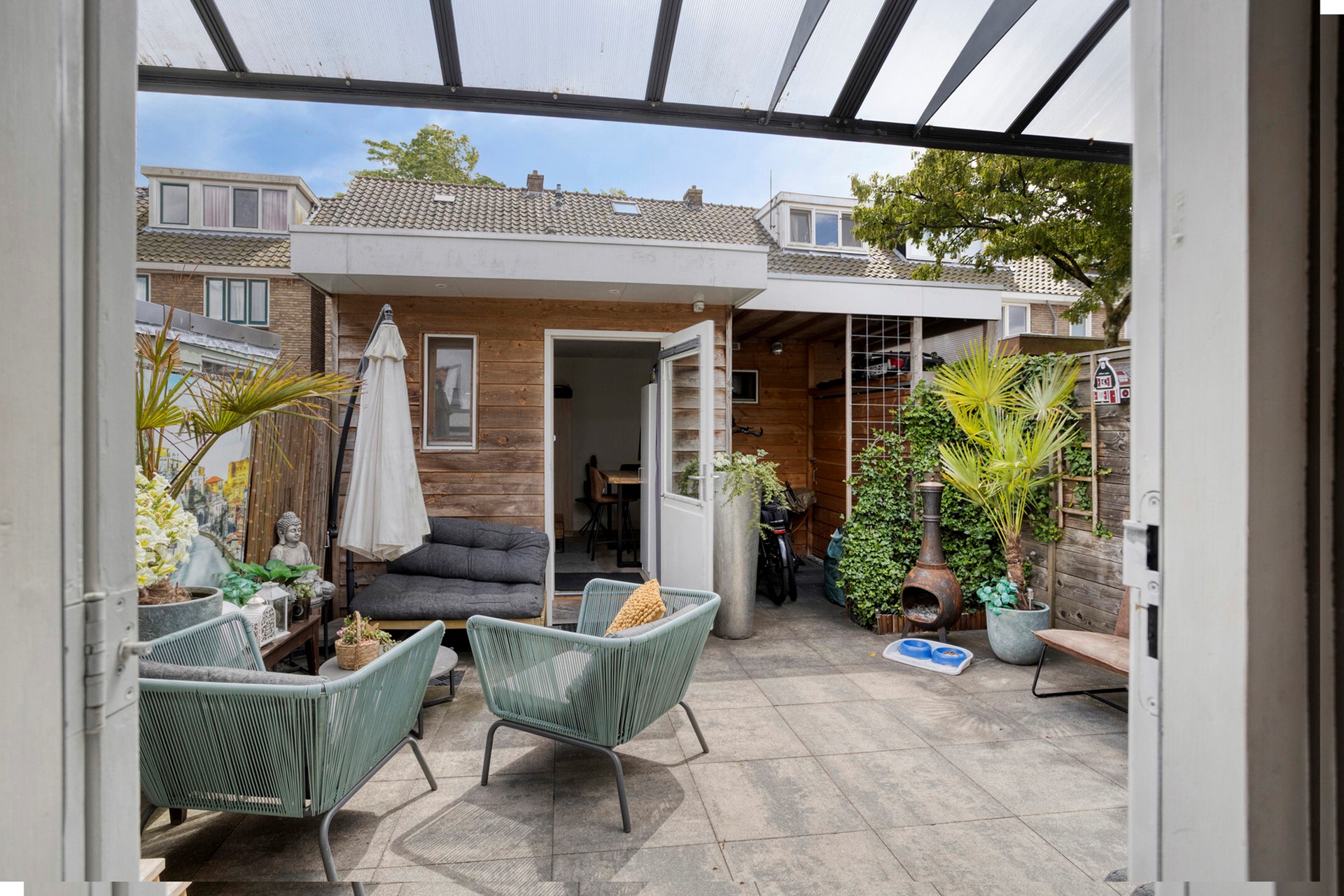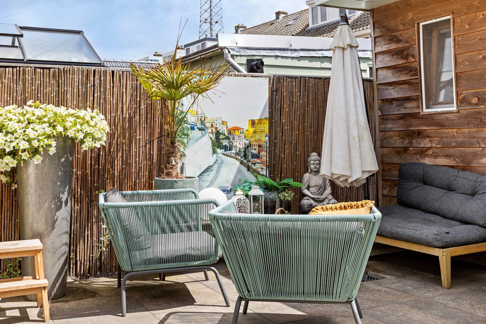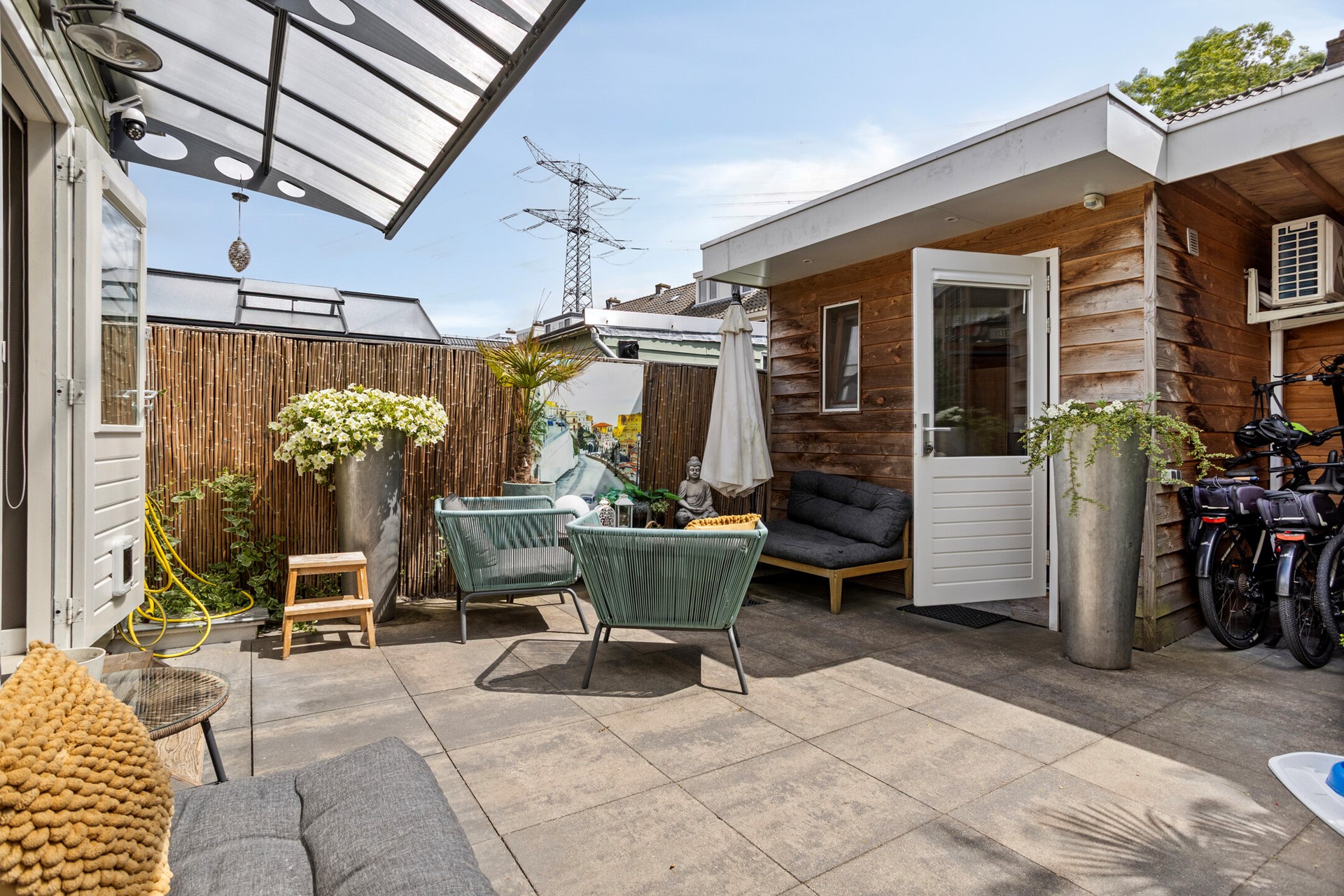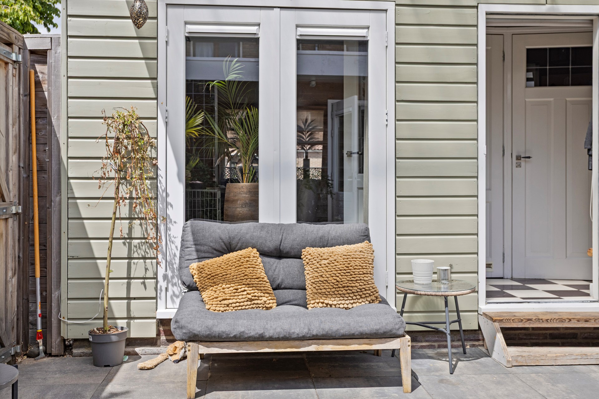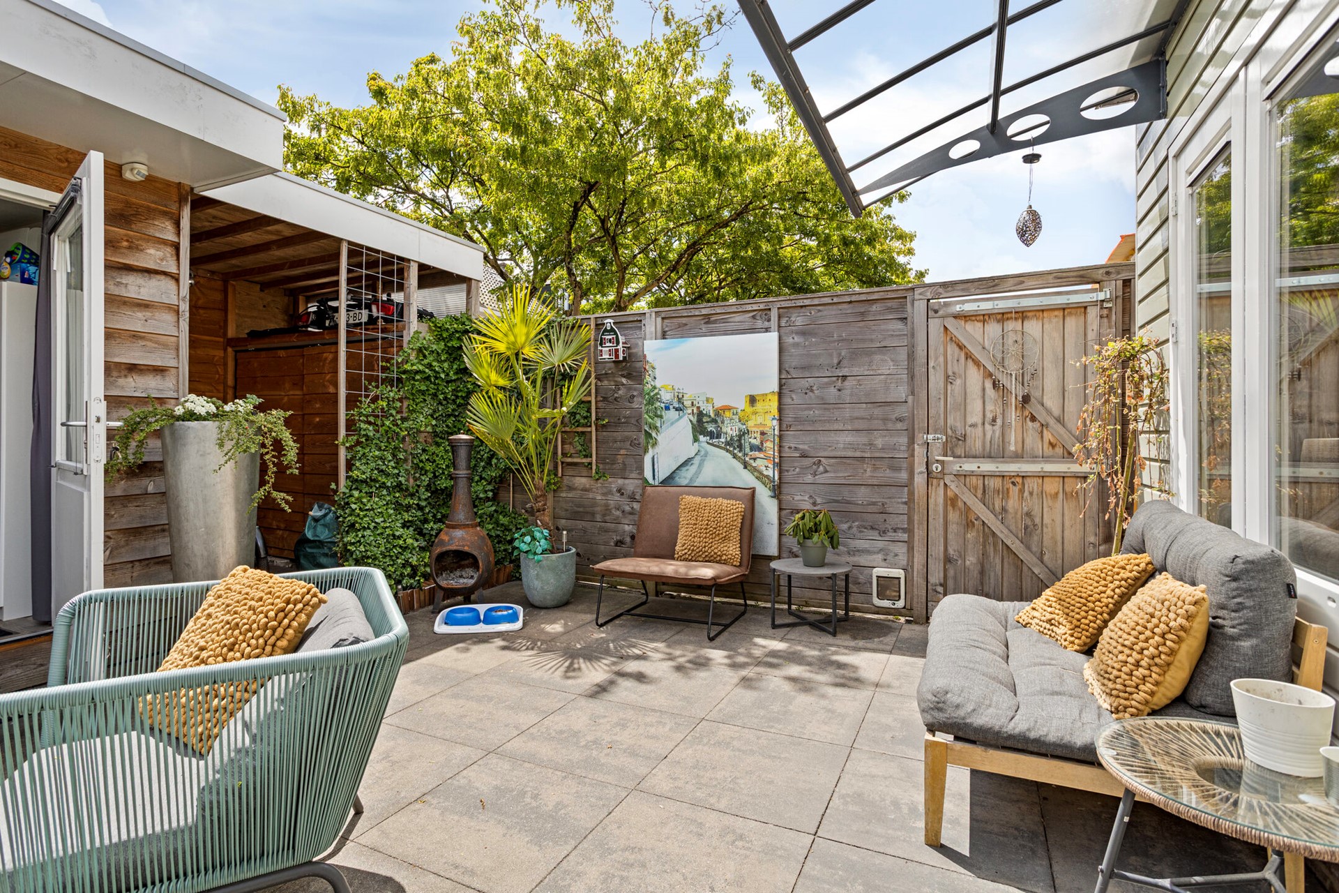 De buitenruimte vormt een absoluut hoogtepunt van deze woning. De fraai aangelegde achtertuin, bereikbaar via een achterom, beslaat een oppervlakte van 45 m² en biedt volop ruimte om te ontspannen. Daarnaast bevindt zich in de tuin een multifunctionele houten berging/woonruimte, uitgerust met verwarming, elektriciteit en een wateraansluiting.